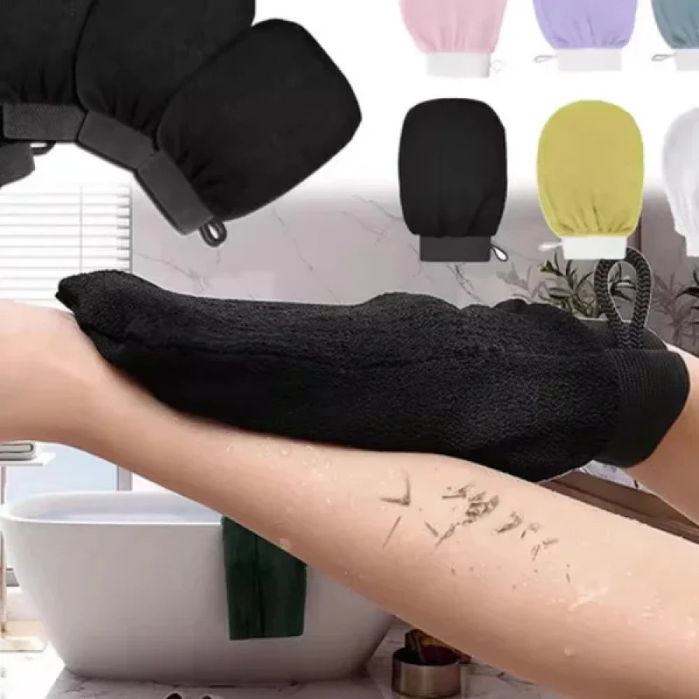 - Deep exfoliation – The glove removes dead skin cells that can make the skin appear dull, promoting a radiant glow.